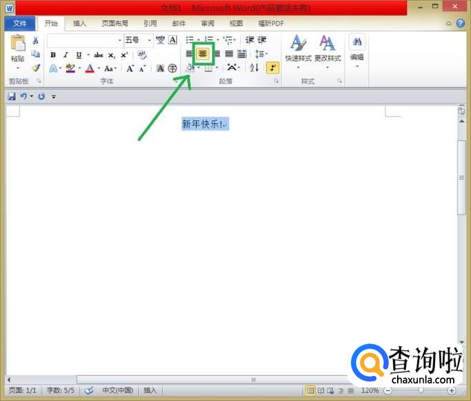 单击“居中”按钮,先设置文字的左右(水平)居中,也是我们平时用的最多的一种“居中”