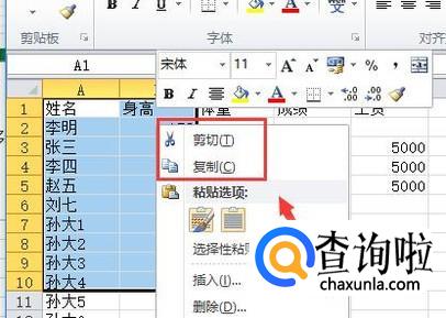 选择要移动的部分,然后右击鼠标,选择剪切或者复制,如图所示。