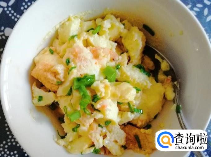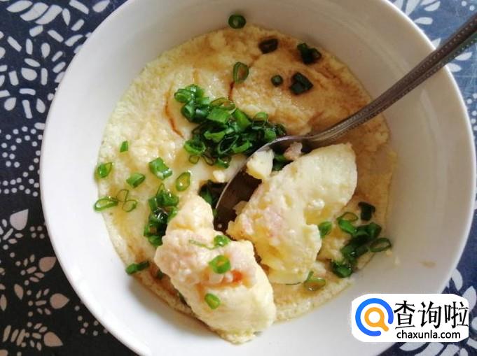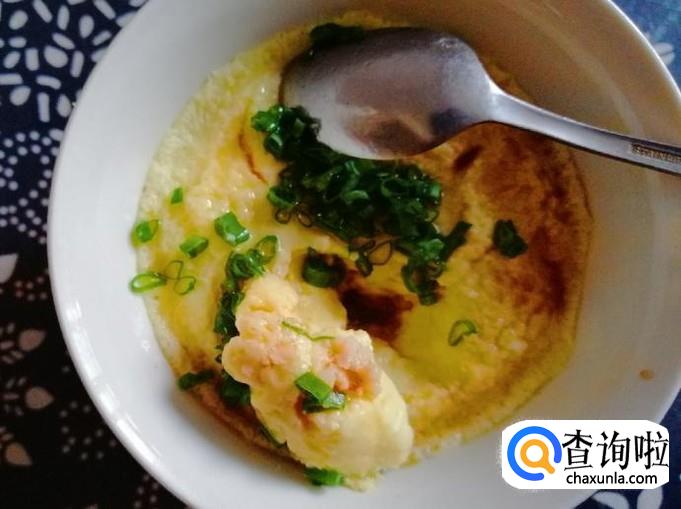 这样香油海虾鸡蛋羹就做好了,关键是营养丰富又鲜美好吃。用勺子挖开一块可以看见所放的海虾仁,把整碗香油海虾鸡蛋羹搅匀晾一下就可以开吃了,嗯超美味!