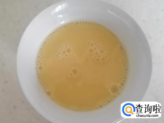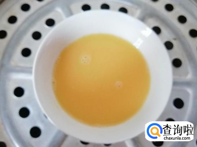 我这里是选用了一个鸡蛋,把鸡蛋洗净外皮,磕在碗中用筷子把鸡蛋搅拌均匀,加入适量温水,水的量少的话容易蒸老了,水要多呢又不容易成型,加好水后用筷子再搅拌,直到蛋液起泡沫。