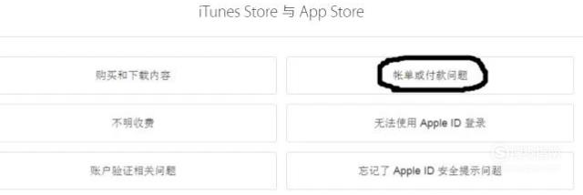 点击“iTunes Store 与 App Store”,点击“账单或付费问题 ”,进入下一界面。