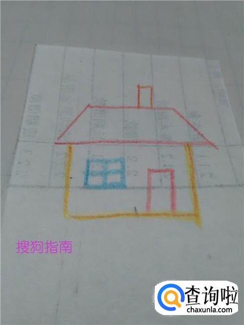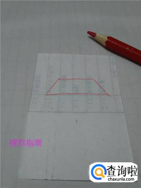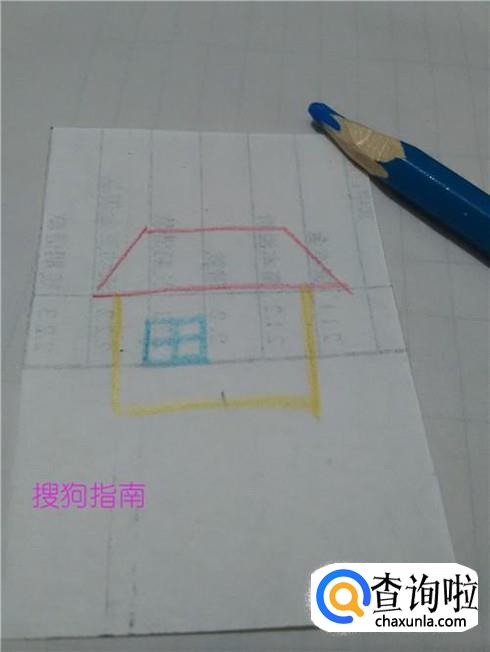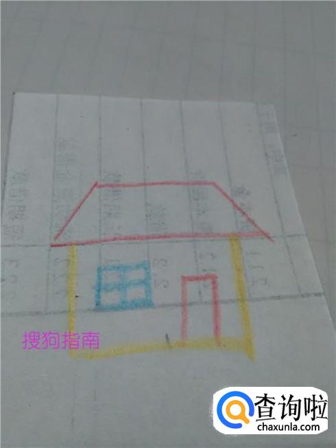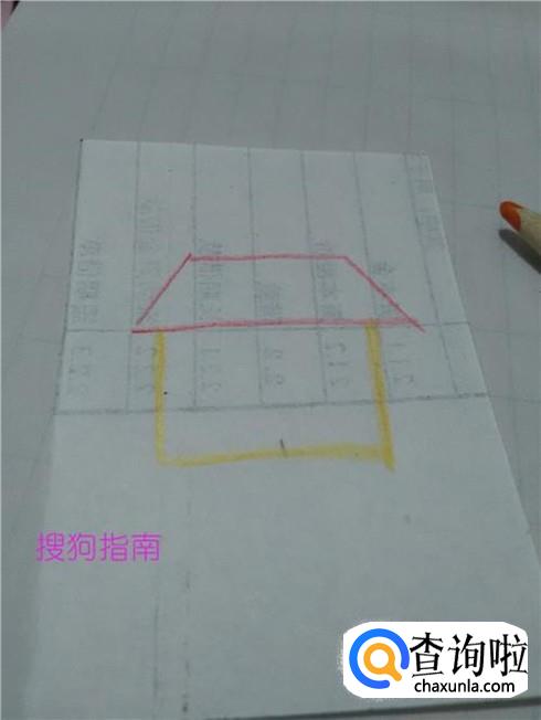 用红笔在纸上画一个梯形,表示小房子的房顶。