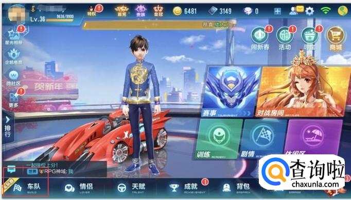 我们登录游戏来到游戏大厅,在游戏大厅的左下角点击车队按钮,如图所示。