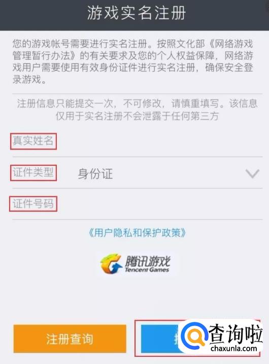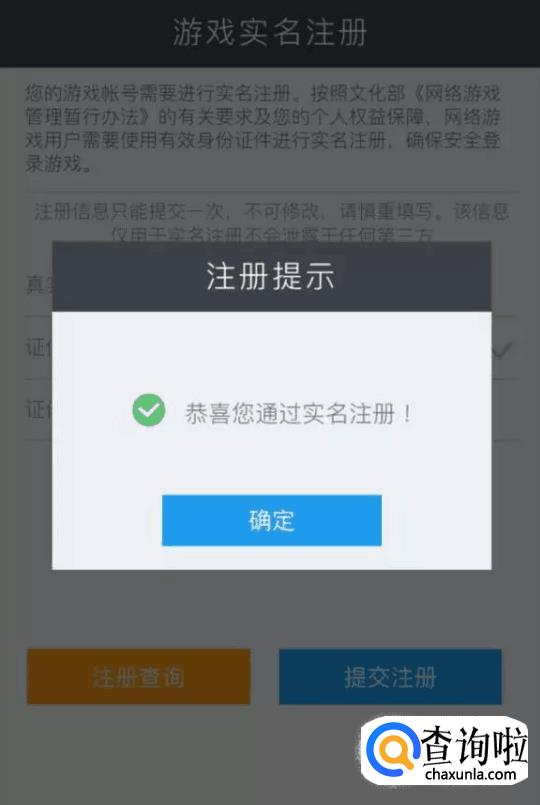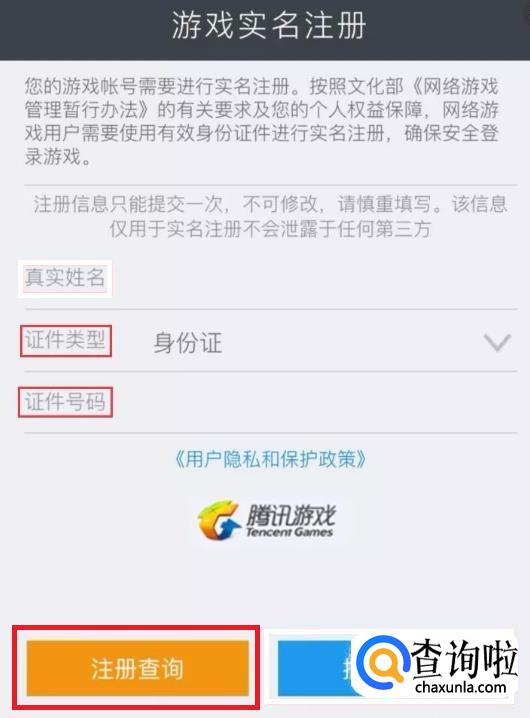 点击注册查询按钮,选择相应QQ/微信帐号,查看自己的实名注册状态。