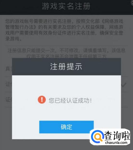 如果页面弹出“您已经认证成功!”,则说明您的帐号号已经成功完成实名注册,可以直接返回游戏界面,畅快游戏。