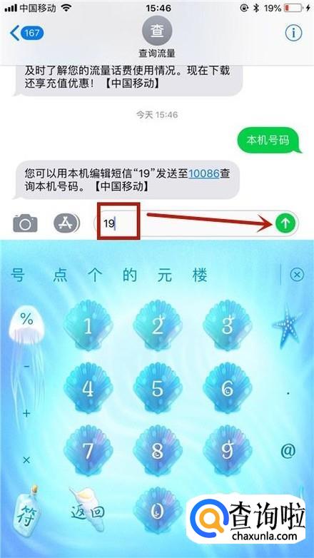 然后输入19并点击发送键,如下图所示。