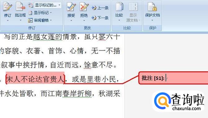 这样,批注就添加完成了,效果如下图所示,只需在批注后面输入修改意见,一条批注就完成了。