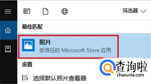 在搜索栏输入“照片”,然后上方的搜索结果就会显示应用程序,我们点击进入。