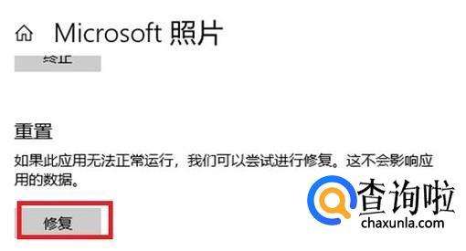 如果修复之后还是不能使用的话,我们可以点击下方的“重置”功能,这样就可以重置这个软件,重置之后就可以正常使用了。