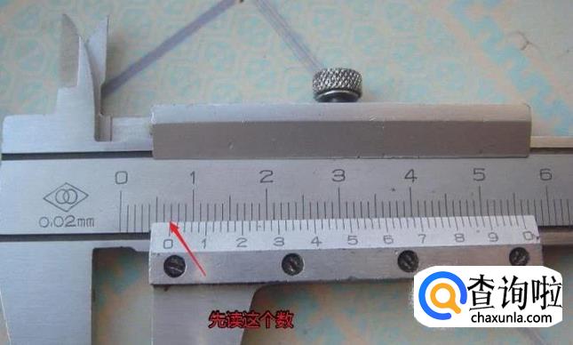 先以游标卡尺的0位对应卡尺身上的整数位刻度读取读数。