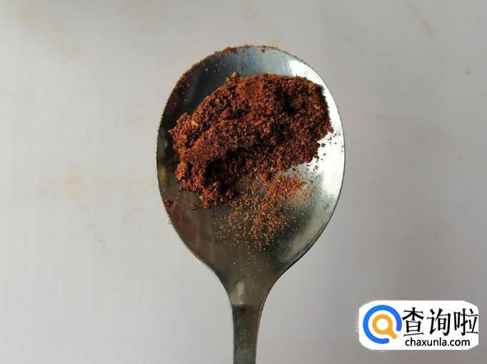 取一勺五香粉备用,我这里选用的是自己炒制的八角、花椒、桂皮等,炒好粉碎成五香粉。