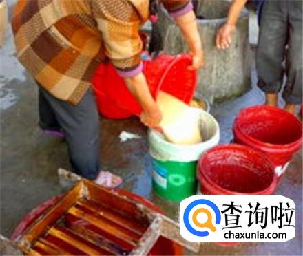 将打碎的地瓜放进桶里或者盆里,加上水搅拌之后倒入一个过滤布里面,用那种大一些的屉布就行,将水分控出去,剩余的红薯水淀粉倒在盆里或者桶里面。