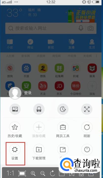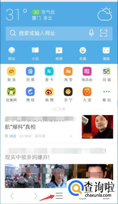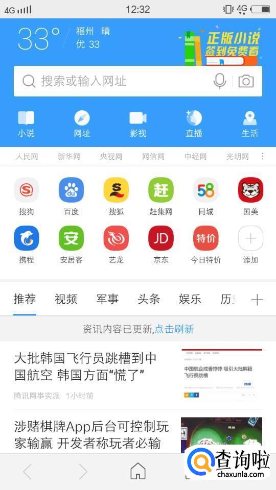 找到手机上的搜狗浏览器放置位置并打开。进入到搜狗浏览器的主页面。