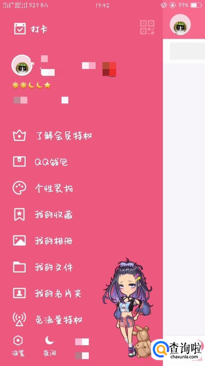 点击进入QQ后,右滑屏幕进入个人设置。