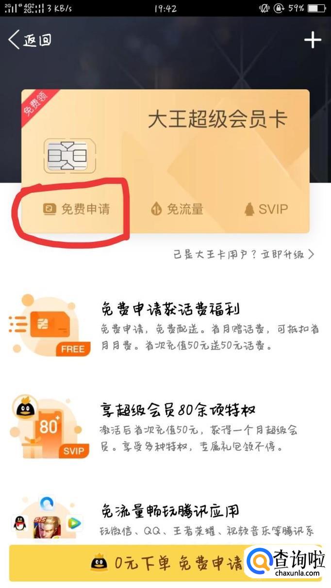 进入免流量特权选项过后,点击免费申请即可。