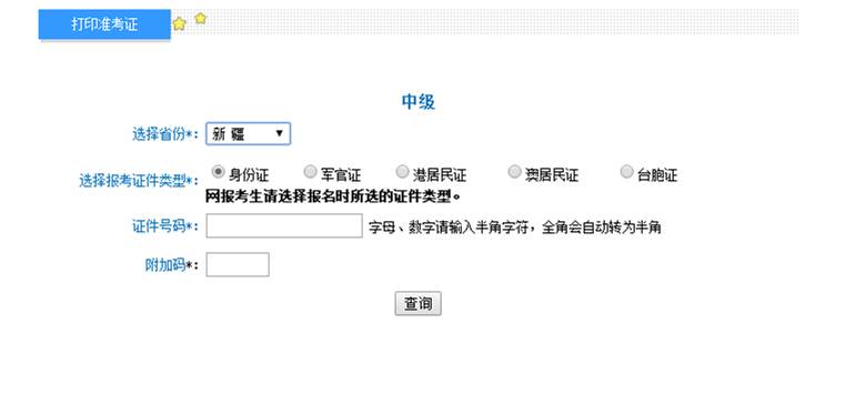 第三步:点击“中级准考证”按钮,进入准考证打印页面。