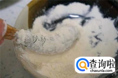 把大虾腌制二十分钟之后,撒一些淀粉或者面粉放进去,抓匀,让大虾表面有一层薄薄的面。