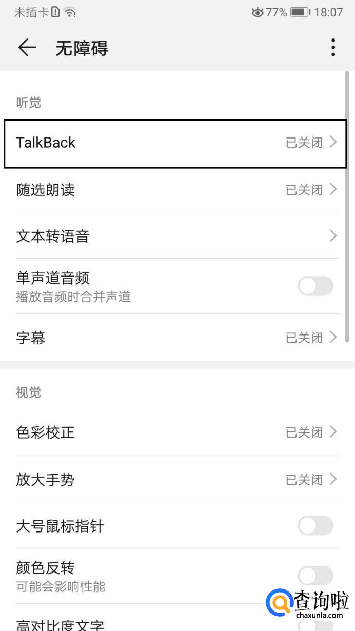 点击进入无障碍,找到TalkBack设置页面,点击进入。