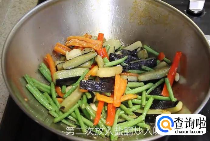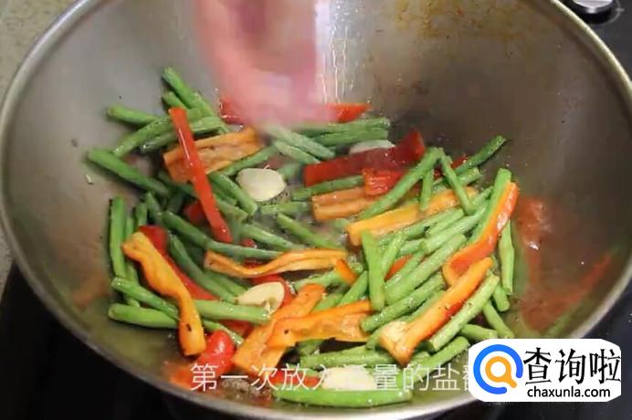 第二次放入盐翻炒入味。