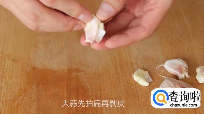 大蒜先拍扁再剥皮。