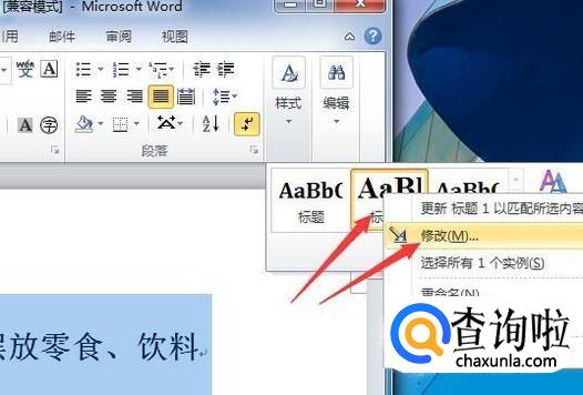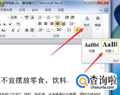 接下来点击功能区的样式,在弹出的项目中右击标题1。