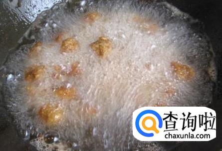 锅装适量的油,开火,油温8成热放丸子进去炸,炸到半黄捞上来,凉1分钟左右。