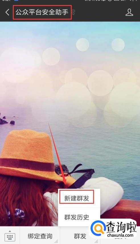 打开公众号“公众平台安全助手”,在菜单栏找到“新建群发”。