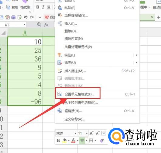 选中输入的数值,右击鼠标,点击图示位置的选项。