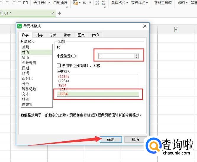 进入之后,将小数位数设置为0,选中图示位置的红色选项,点击“确定”即可,如图所示。