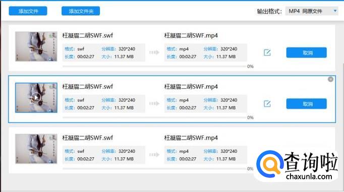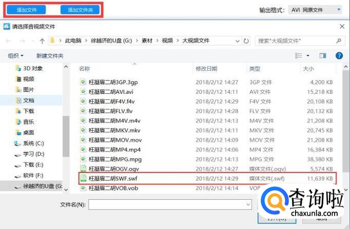 安装成功后,点击添加文件按钮或者添加文件夹按钮,打开SWF格式的视频文件进行转换,