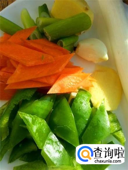 葱姜蒜切末,青红椒与胡萝卜适当切点待用。