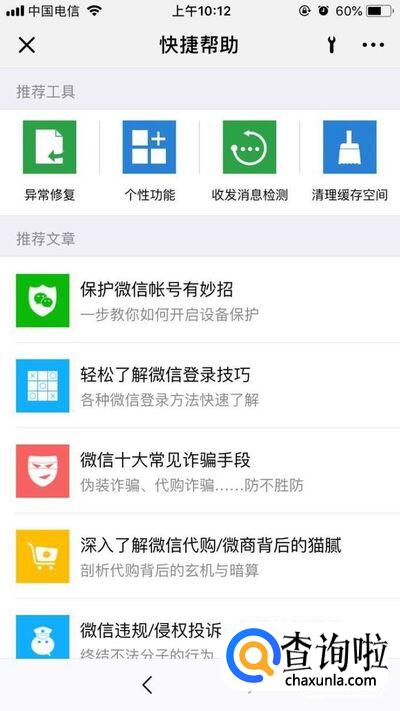 点击进入后,选择【快捷帮助】-【异常修复】。