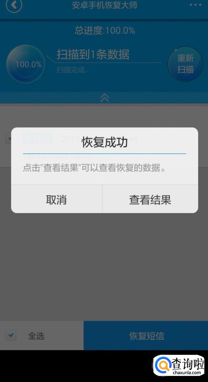 在手机上点击开始恢复,并等待聊天记录的恢复即可。