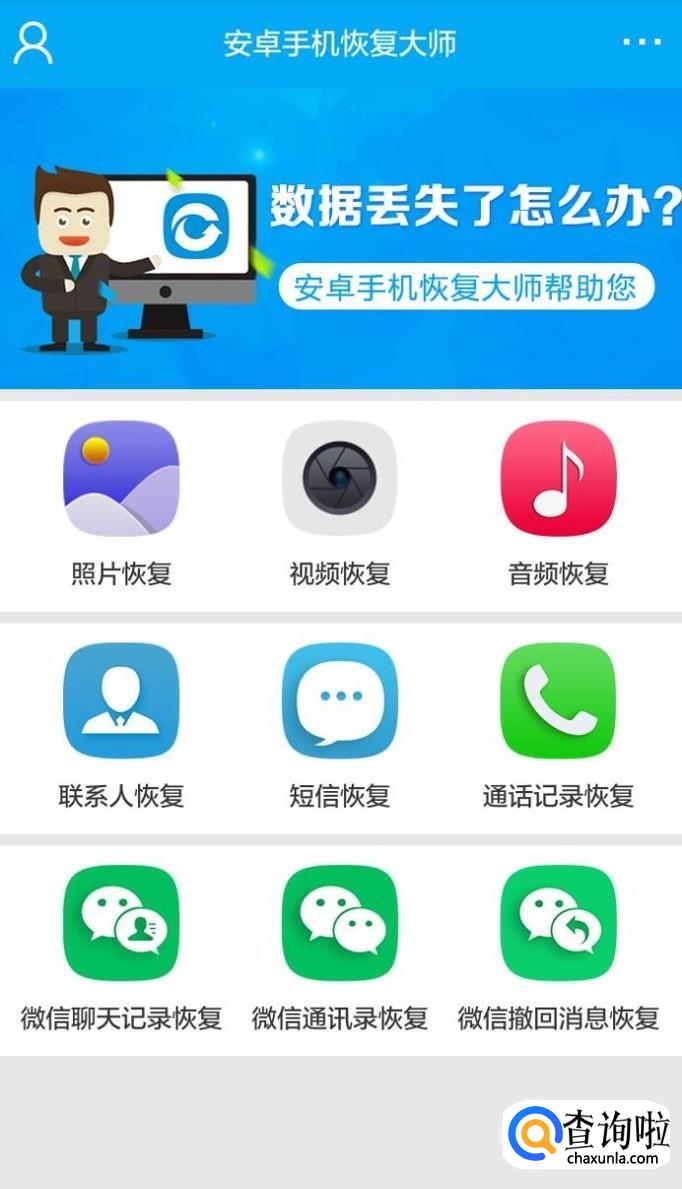 在手机上安装安卓手机恢复大师APP,运行软件,自动识别连接手机。