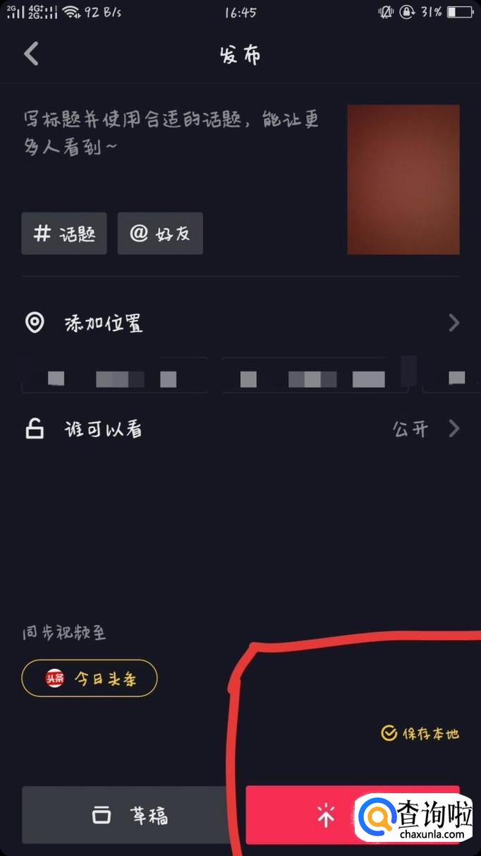 拍摄完成后,添加完喜欢的特效后,就可以发布了。