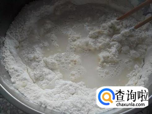 然后倒入面粉里,和成面团放到面盆里,用保鲜膜盖上,然后放到比较暖和的地方,也可以放在阳光下。等面团膨胀起来,就可以了。