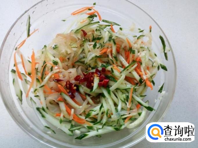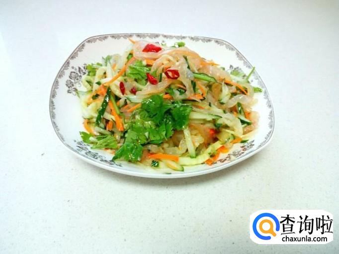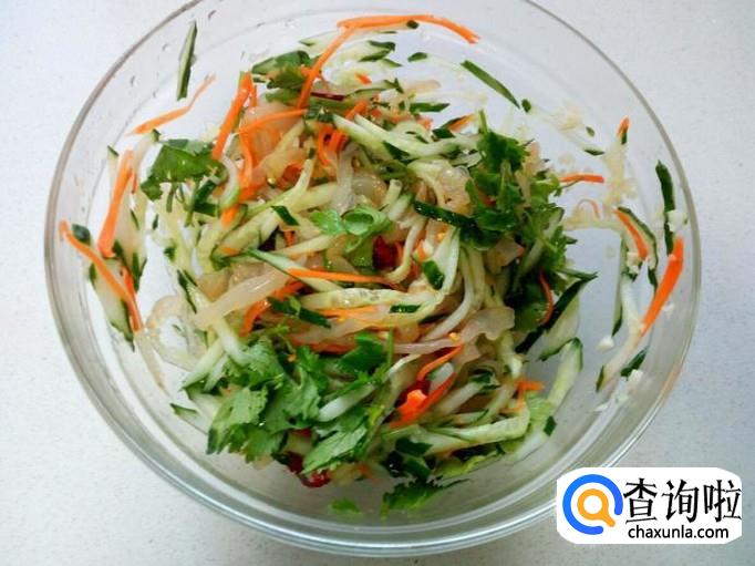 黄瓜 1根 ,海蜇皮 200克 ,胡萝卜 半根 ,香菜 适量 。
