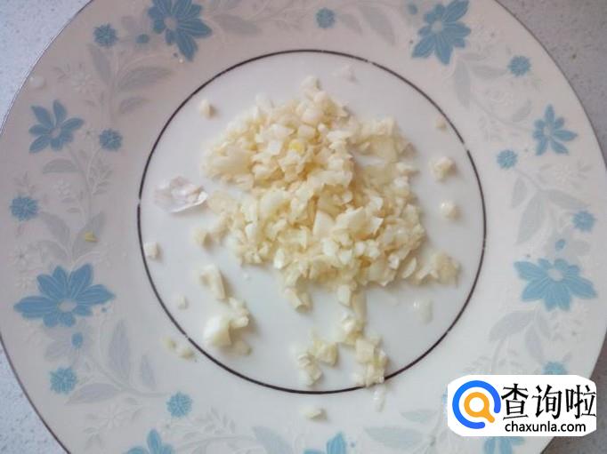蒜切成碎末。红干椒用水清洗干净,控干水分,切成小段。