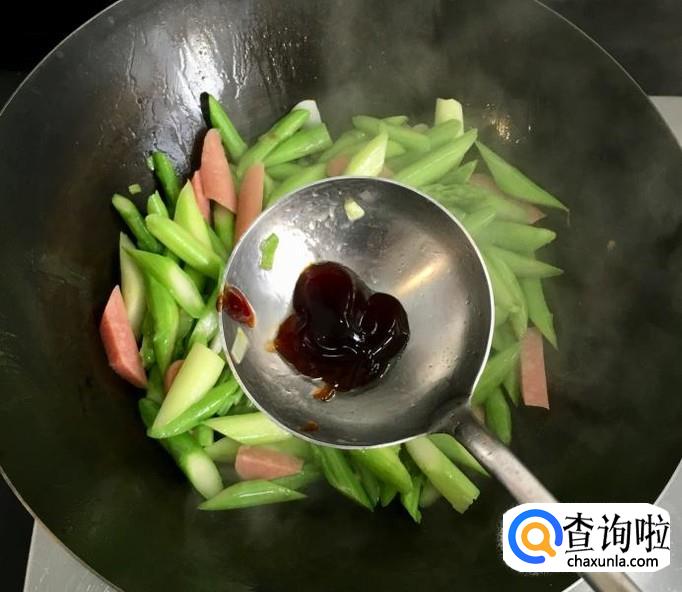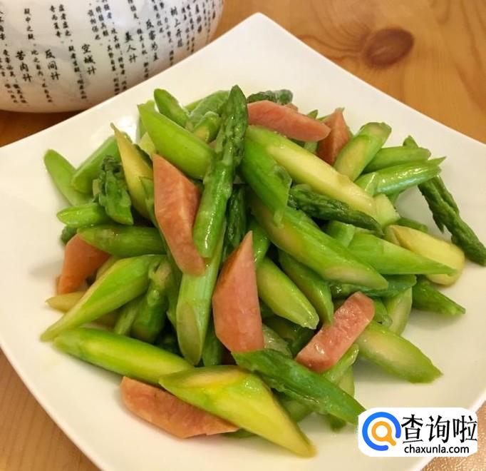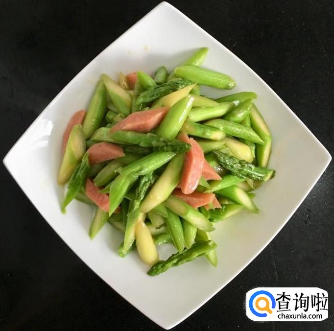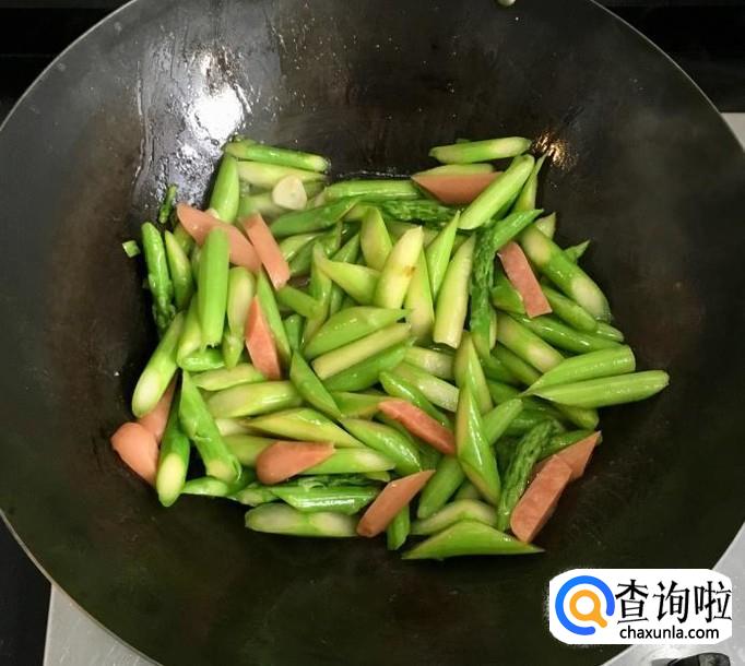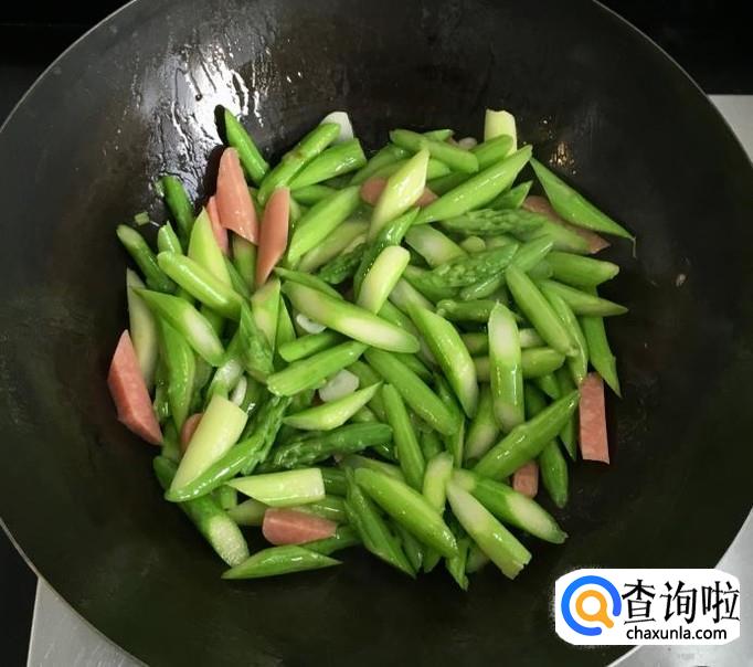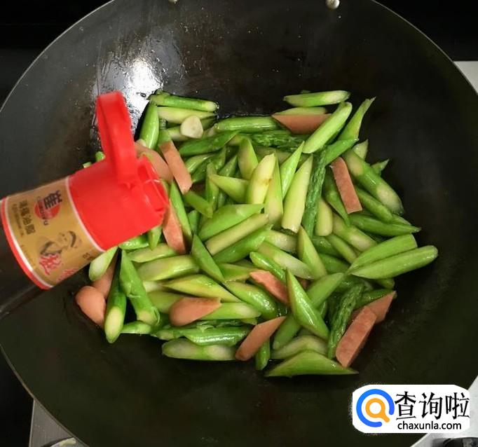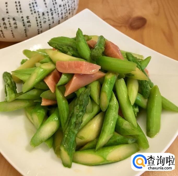 芦笋,火腿肠,葱,蒜,花生油,香油,盐,蚝油,水等等