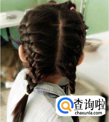 如果孩子稍微大点的话,可以将头发分为两部分,像编蝎子辫一样,从上编到底,配上漂亮的发饰,扎出来的效果也非常的洋气。