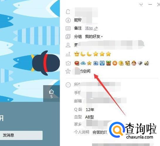 进入他的QQ空间。
