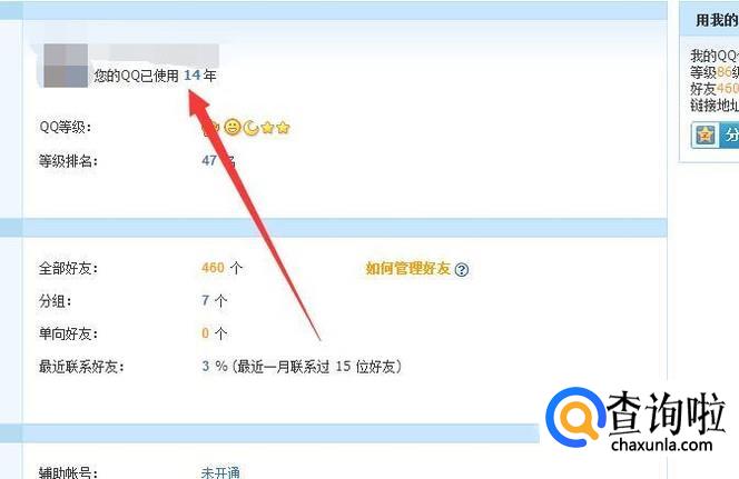 在这里我们就可以看到自己的QQ使用年限了,这个是真实的QQ注册年限,唯一的缺点是没办法看到具体的注册日期。