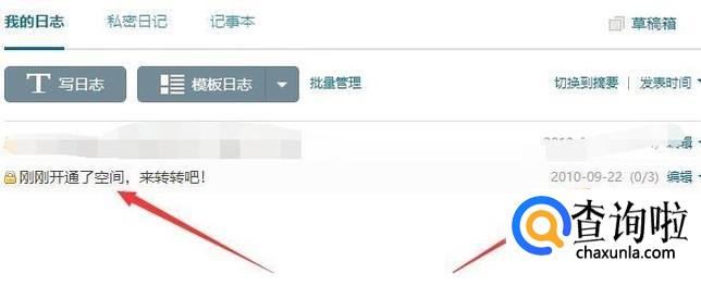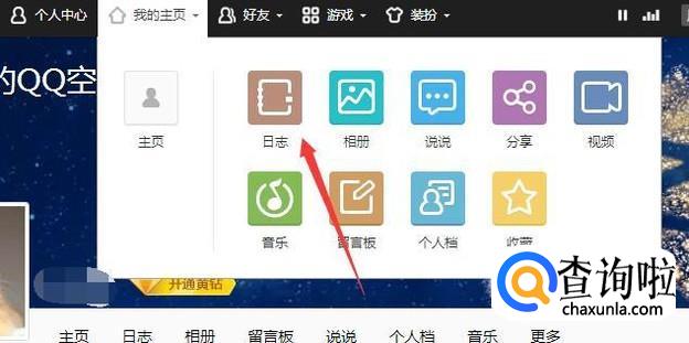 在我的主页选择“日志”。
