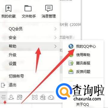 电脑上登录QQ,并且打开我的QQ中心。