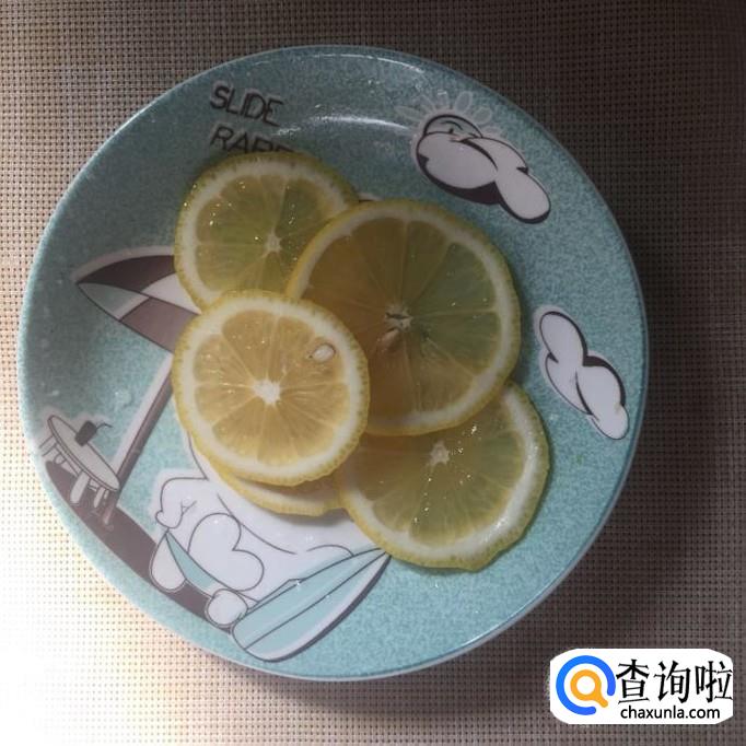 接着将柠檬切成片,如下图所示。