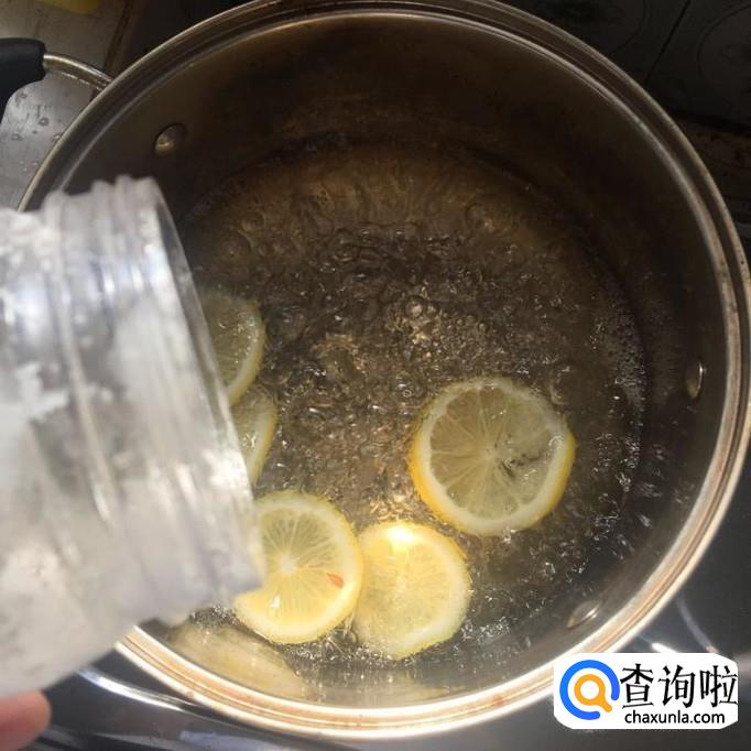 然后锅中放入适量的水,待水烧开,把柠檬片倒入锅中,开小火煮30分钟。