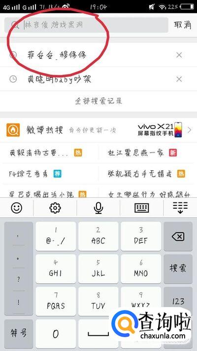 小编这里以关注林更新的微博为例,在搜索栏里输入“林更新”,就会弹出跟林更新相关的微博