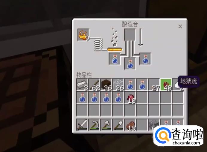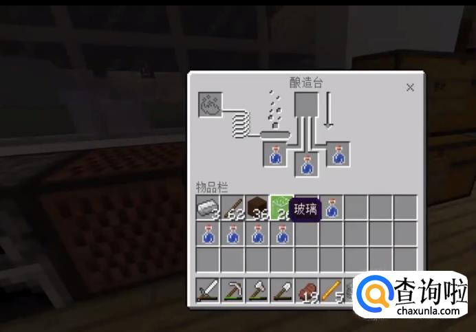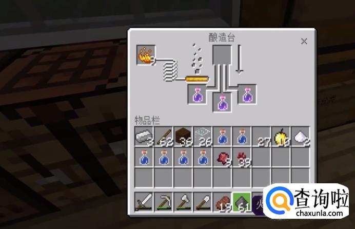 首先我们搭建一个”酿造台“——需要1根烈焰棒和3块原石。