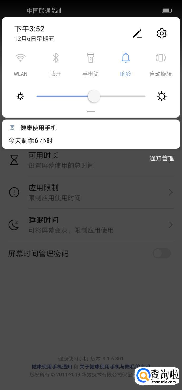 如果是开着学生模式的手机,打开手机后,从屏幕上方往下滑,会显示健康使用手机的剩余时间。