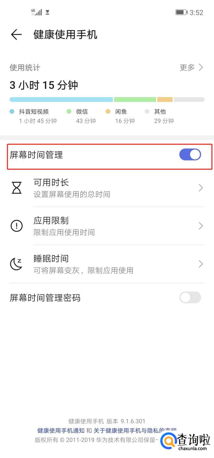 进入后可以看到使用统计情况,看到屏幕时间管理选项。